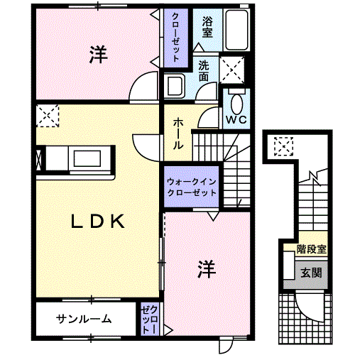 アパート カーサ プラシードB(2LDK/2階) | |||||||