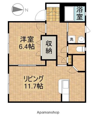 | 間取り詳細 | 洋室(6.4帖)、LDK(11.7帖) | ||