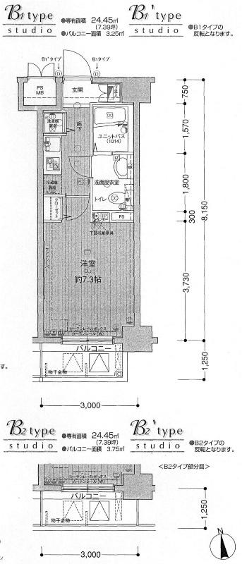 | 間取り | 1K | 専有面積 | 24.45m2 |