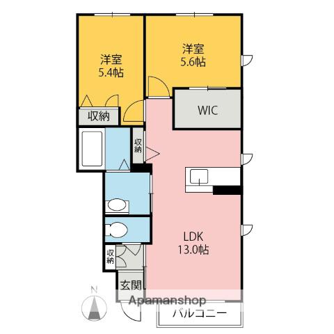 | 間取り詳細 | LDK(13帖)、洋室(5.6帖)、洋室(5.4帖) | ||