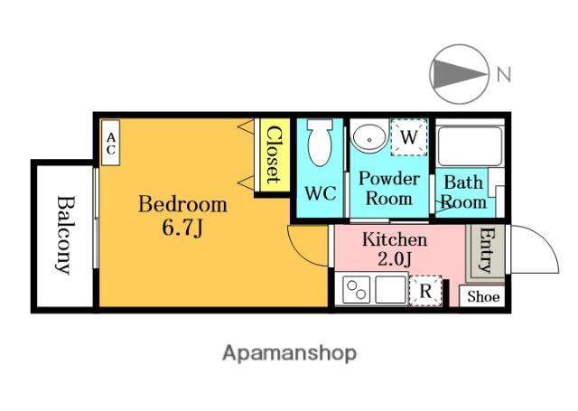 | 間取り詳細 | K(2帖)、洋室(6.7帖) | ||