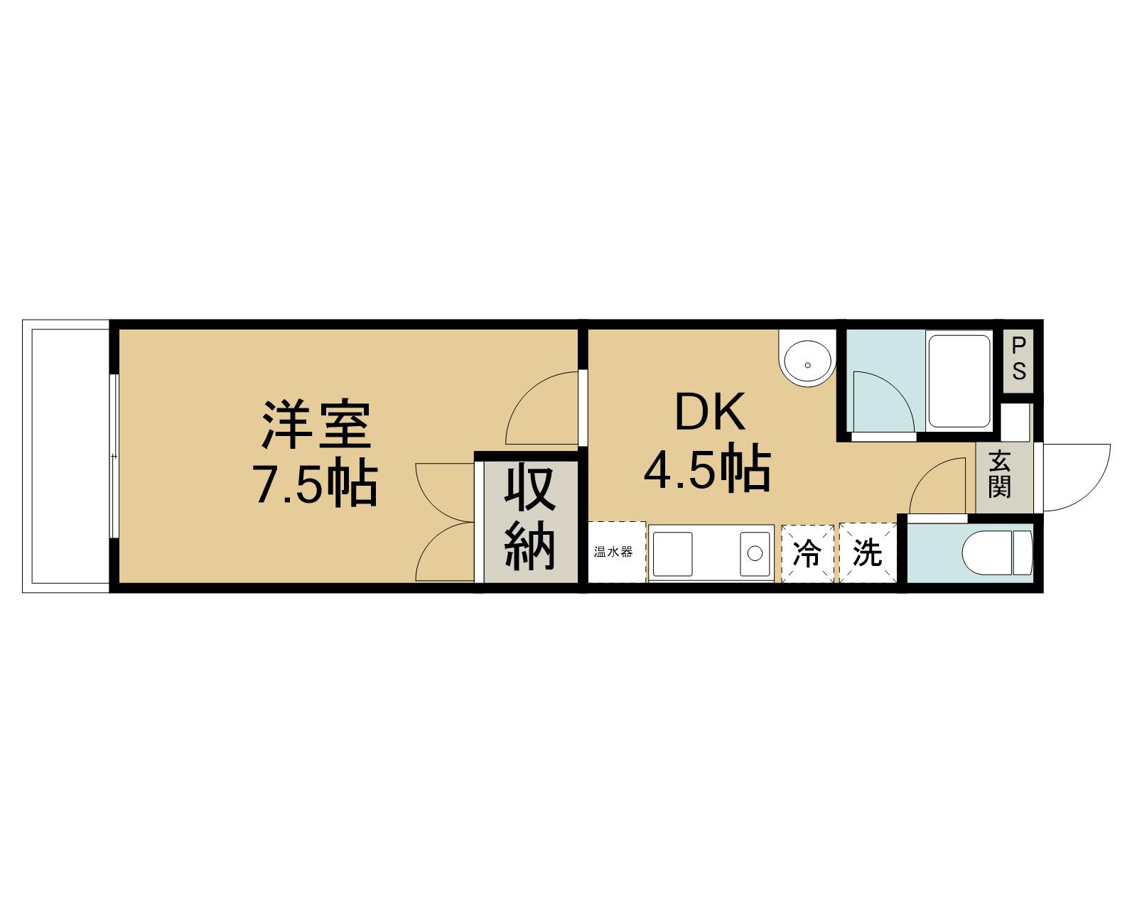 | 間取り詳細 | DK(4.5帖)、洋室(7.5帖) | ||