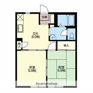 | 間取り詳細 | DK(5.9帖)、洋室(5.9帖)、和室(5.9帖) | ||