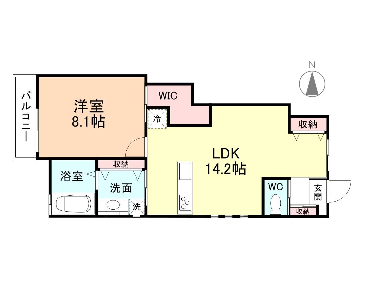 | 間取り詳細 | LDK(14.2帖)、洋室(8.1帖) | ||