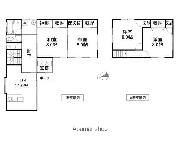 | 間取り詳細 | LDK(11帖)、洋室(8帖)、洋室(8帖)、和室(8帖)、和室(8帖) | ||