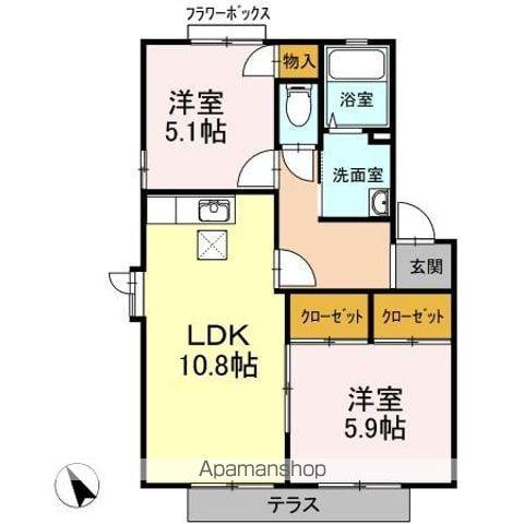 | 間取り詳細 | LDK(10.8帖)、洋室(5.1帖)、洋室(5.9帖) | ||