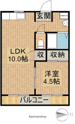 | 間取り詳細 | 洋室(4.5帖)、LDK(10帖) | ||