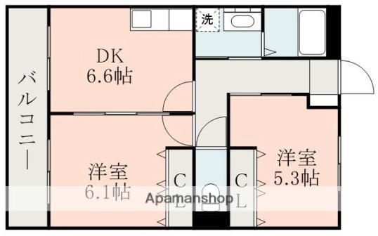 | 間取り詳細 | DK(6.6帖)、洋室(6.1帖)、洋室(5.3帖) | ||