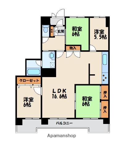 | 間取り詳細 | LDK(16.6帖)、和室(6帖)、和室(6帖)、洋室(6帖)、洋室(5.5帖) | ||