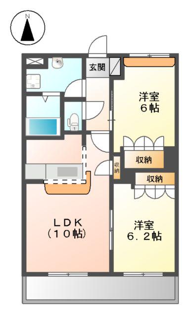 | 間取り詳細 | LDK(10帖)、洋室(6帖)、洋室(6.2帖) | ||