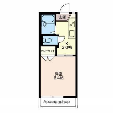 | 間取り詳細 | DK(3帖)、洋室(6.4帖) | ||