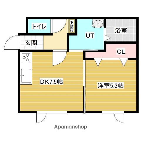 | 間取り詳細 | DK(7.5帖)、洋室(5.3帖) | ||