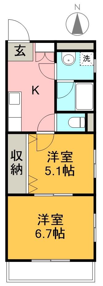 | 間取り詳細 | 洋室(5.1帖)、洋室(6.7帖)、K(5帖) | ||