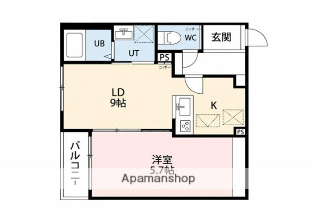 | 間取り詳細 | LDK(9帖)、洋室(5.7帖) | ||