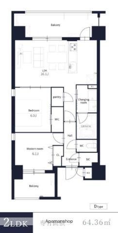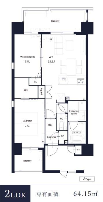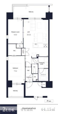 | 間取り | 2LDK | 専有面積 | 64.15m2 |
