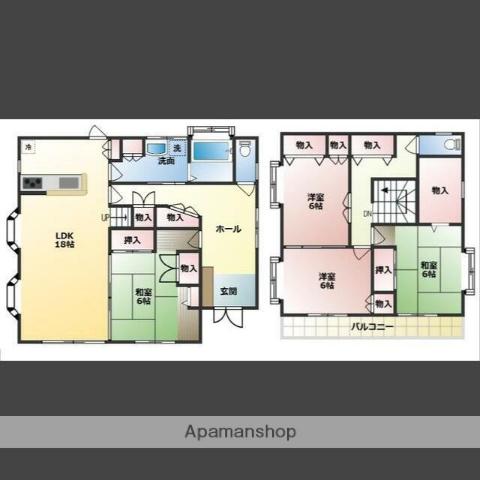 | 間取り詳細 | LDK(18帖)、洋室(6帖)、洋室(6帖)、和室(6帖)、和室(6帖) | ||