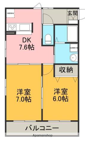 | 間取り詳細 | 洋室(7帖)、洋室(6帖)、DK(7.6帖) | ||