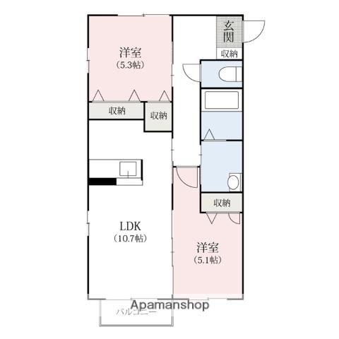 | 間取り詳細 | LDK(10.7帖)、洋室(5.3帖)、洋室(5.1帖) | ||