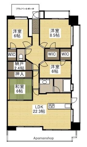 | 間取り詳細 | LDK(22.3帖)、洋室(8.5帖)、洋室(6帖)、洋室(6帖)、和室(6帖) | ||