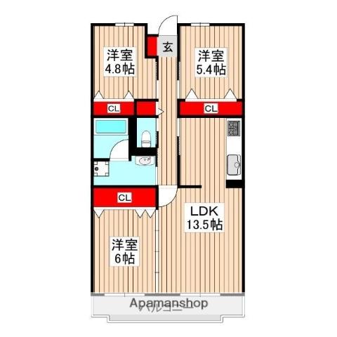 | 間取り詳細 | LDK(13.5帖)、洋室(6帖)、洋室(4.8帖)、洋室(5.4帖) | ||