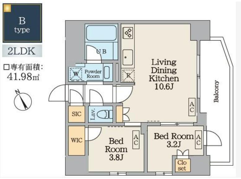 | 間取り | 2LDK | 専有面積 | 41.98m2 |