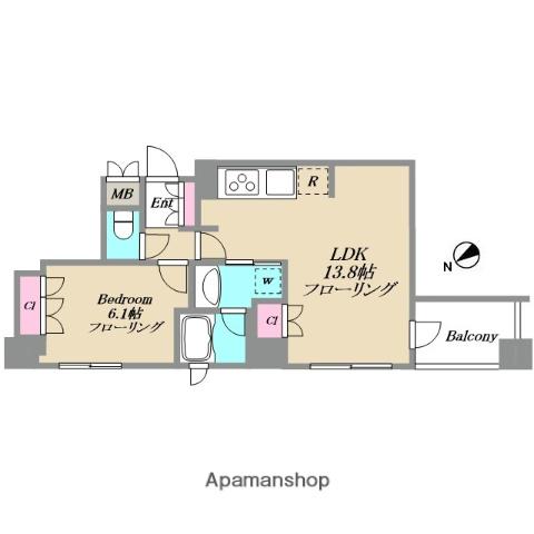 | 間取り詳細 | 洋室(6.1帖)、LDK(13.8帖) | ||