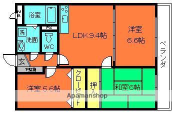 | 間取り詳細 | 洋室(5.6帖)、和室(6帖)、洋室(6.6帖)、DK(9.4帖) | ||