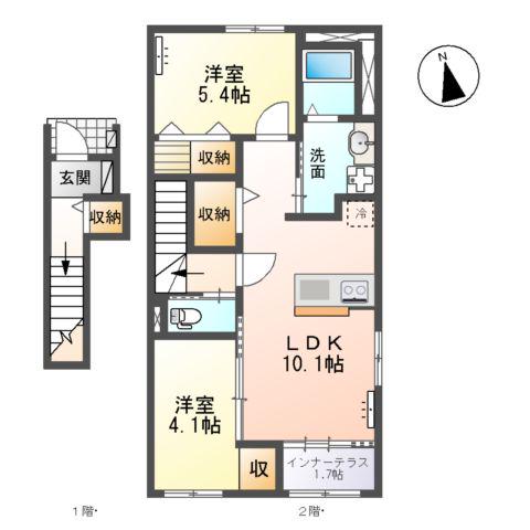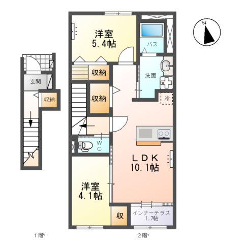 | 間取り詳細 | LDK(10.8帖)、洋室(4.9帖) | ||