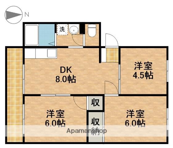| 間取り詳細 | 洋室(6帖)、洋室(6帖)、洋室(4.5帖)、DK(8帖) | ||