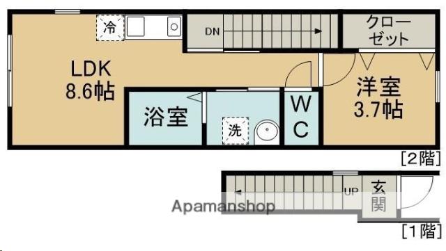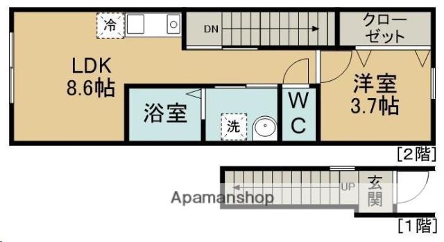 | 間取り詳細 | 洋室(3.7帖)、LDK(8.6帖) | ||