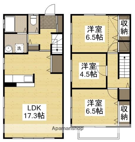 | 間取り詳細 | LDK(17.3帖)、洋室(6.5帖)、洋室(6.5帖)、洋室(4.5帖) | ||