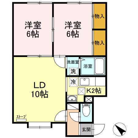 | 間取り詳細 | LD(10帖)、K(2帖)、洋室(6帖)、洋室(6帖) | ||