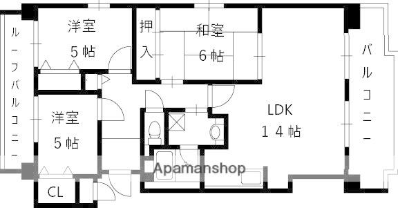 | 間取り詳細 | LDK(14帖)、洋室(5帖)、洋室(5帖)、和室(6帖) | ||
