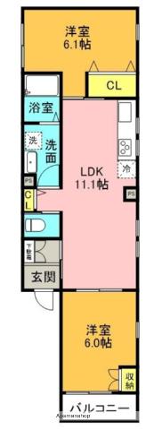 | 間取り詳細 | LDK(11.1帖)、洋室(6帖)、洋室(6.1帖) | ||
