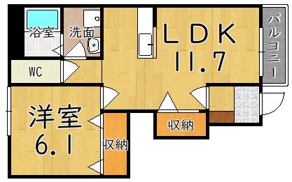 | 間取り詳細 | LDK(11.7帖)、洋室(6.1帖) | ||