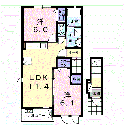 プロムナードソレイユBの賃貸物件情報(2LDK/2階)
