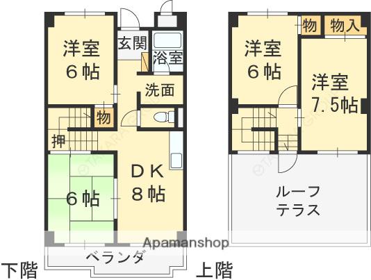 | 間取り詳細 | DK(8帖)、洋室(6帖)、和室(6帖)、洋室(6帖)、洋室(7.5帖) | ||