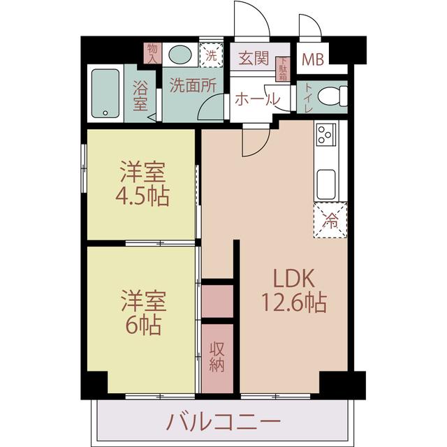 | 間取り詳細 | LDK(12.6帖)、洋室(6帖)、和室(4.5帖) | ||