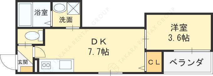 | 間取り詳細 | 洋室(3.6帖)、DK(7.7帖) | ||