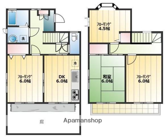 | 間取り詳細 | DK(6帖)、和室(6帖)、洋室(6帖)、洋室(6帖)、洋室(4.5帖) | ||
