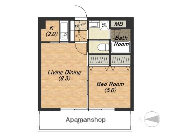 | 間取り詳細 | K(2.5帖)、洋室(8帖) | ||