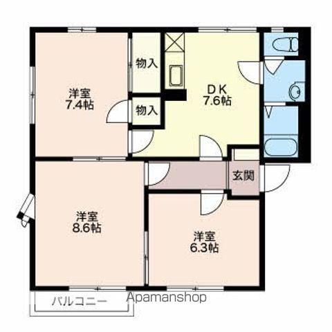 | 間取り詳細 | DK(7.6帖)、洋室(6.3帖)、洋室(8.6帖)、洋室(7.4帖) | ||
