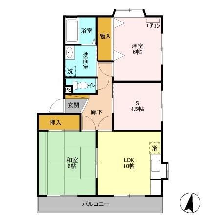 | 間取り詳細 | 和室(6帖)、洋室(6帖)、LDK(10帖)、S(4.5帖) | ||
