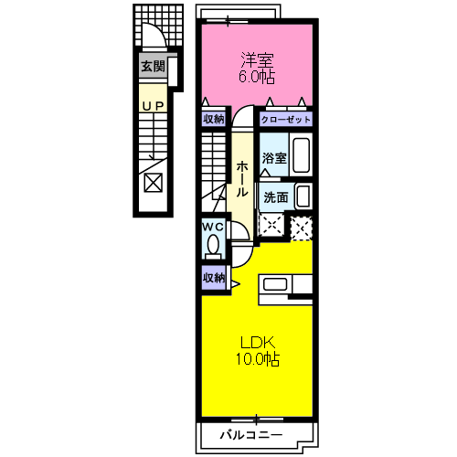 マンション ソレイユ宮城野I(1K/2階) | |||||||