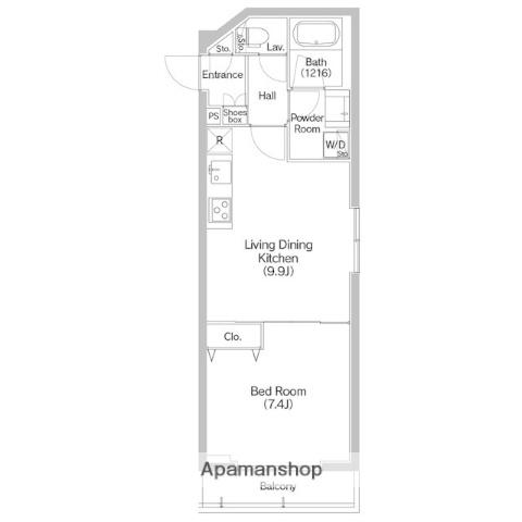 | 間取り詳細 | 洋室(7.4帖)、LDK(9.9帖) | ||