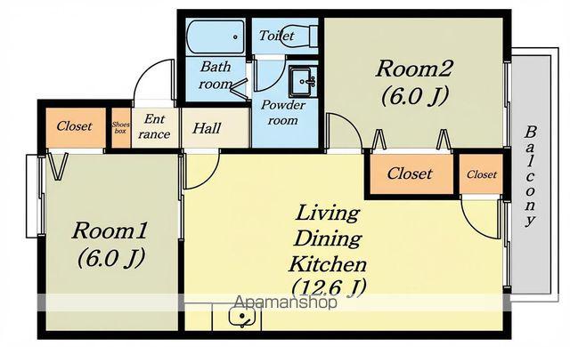 | 間取り詳細 | LDK(12.6帖)、洋室(6帖)、洋室(6帖) | ||