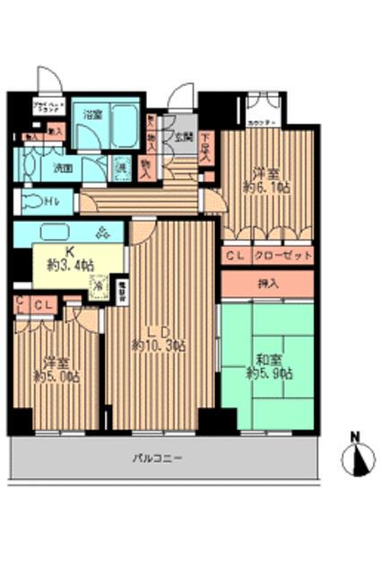 | 設備 | バス・トイレ別、オートロック、テレビドアホン、宅配ボックス、浴室乾燥機、システムキッチン、温水洗浄便座、バルコニー、フローリング、コンロ:ガス、CATV、BSアンテナ、洗濯機:室内 | ||