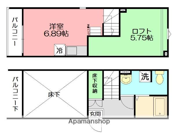 | 設備 | バス・トイレ別、テレビドアホン、インターネット対応、システムキッチン、温水洗浄便座、ロフトあり、コンロ:ガス、CSアンテナ、BSアンテナ、インターネット使用料無料、シャワー、給湯、冷房、洗濯機:室内 | ||
