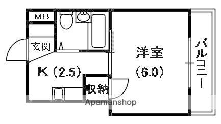 | 間取り詳細 | K(2.5帖)、洋室(6帖) | ||