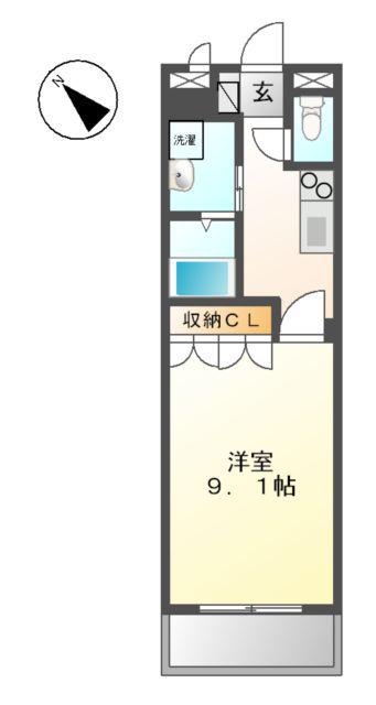 | 間取り詳細 | K(2帖)、洋室(9.1帖) | ||
